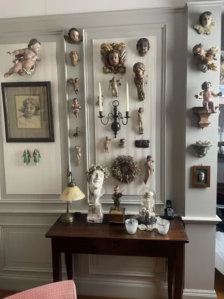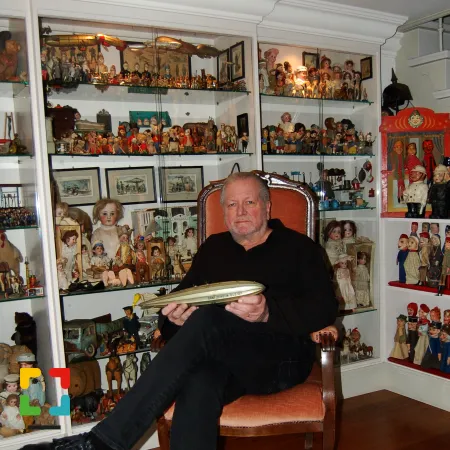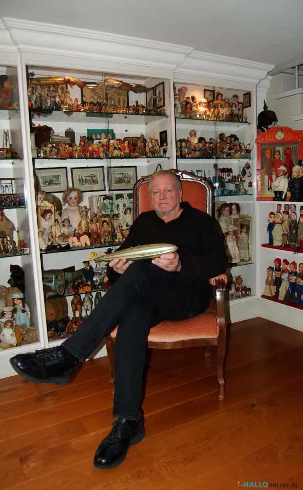 In huize Simons tref je nagenoeg in iedere ruimte attributen aan uit Wims verzamelingen. Op de vloer, op kasten, tafels en aan de wand. Toch is de woning aan de Kloosterstraat geen volgestouwd minimuseum. Er blijft genoeg leefruimte over en dat is ook de bedoeling. Materiaal uit de jaren twintig en dertig van de vorige eeuw, waaronder veel speelgoed, is duidelijk favoriet. De grote vitrinekast in de voormalige opkamer staat barstensvol poppen, beren, tinnen soldaatjes, blikken speelgoed en zelfs mini zeppelins ontbreken niet. “Dat vooroorlogse speelgoed is ook zó mooi”, zegt Wim. “Het is héél vakkundig en met een goed gevoel voor vorm gemaakt. Vaak prachtig handbeschilderd en de mechaniek is technisch erg goed.”
