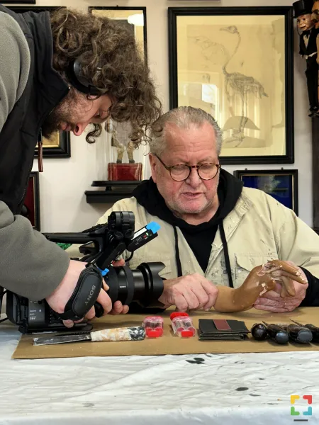Ik heb blijkbaar in die kringen wat bekendheid gekregen. Gisteren en eergisteren (4 en 5 februari, red.) was hier een filmploeg van het ZDF te gast om opnamen te maken voor het televisie programma Bares für Rares Händlerstücke. Twee dagen hebben ze gefilmd waarvan uiteindelijk acht minuten in de uitzending worden verwerkt. Een nieuwe ervaring voor mij. In Bares für Rares presenteren geselecteerde kandidaten elk een curiositeit, zeldzaamheid of antiek. Na het ontvangen van expertise, krijgen ze de mogelijkheid om hun object te koop aan te bieden. Ze hebben mij gefilmd bij het restaureren van een antiek voorwerp dat in zo’n uitzending komt. Ik mag er niet veel over vertellen omdat het programma pas in augustus uitgezonden wordt.”