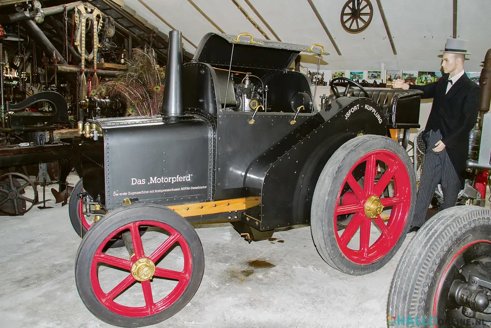 Frans Nouwen: “Veel vrije tijd heb ik eigenlijk nooit gehad, of misschien mijzelf nooit gegund. Ik was en ben nog altijd wel ergens mee bezig. Gelukkig had ik altijd aan een paar uur slaap voldoende en zodoende telde mijn werkdag heel wat uren. Als ik al wat vrije tijd had, dan hield ik mij bezig met het opknappen van oude tractoren. Daar ben ik al vrij jong mee begonnen. Dat vond ik vroeger al ontzettend boeiend vanwege de oude mechanische technieken. Ik wilde en wil nog altijd weten hoe iets eigenlijk functioneert. Die interesse in techniek en in alles wat oud is, stond aan de basis van – zoals je ziet- mijn wat uit de hand gelopen verzamelhobby. Na het opknappen van oude tractoren, ging ik door motoren aangedreven machines renoveren. Een grote 26 pk industriemotor, die dienst gedaan heeft in een Franse bierbrouwerij, heb ik helemaal gerenoveerd en deze is nu een van mijn topstukken. Die motor was zó groot dat hij niet paste in een van de bestaande gebouwen en daarom heb ik een oud aandoend houten gebouw, om de motor heen gebouwd.