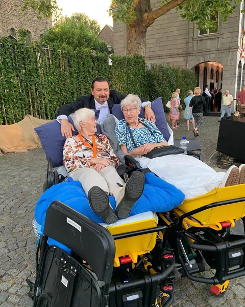 Huub Gubbels: ”Toen we in 2013 van start gingen, hebben we 18 wensritten verzorgd. Nu is dat uitgegroeid tot meer dan 200 ritten per jaar. We verzorgen iedere week wel 4 a 5 ritten. Dat doen we op werkdagen maar ook in weekends. De wensaanvrager geeft aan waar hij of zij naar toe wil en wanneer. Dat kan echt van alles zijn. Er zijn mensen die nog één keer in hun leven de zee willen zien, anderen willen nog een keer een wedstrijd van hun favoriete voetbalclub bijwonen of met hun gezin de Efteling bezoeken. Het is echt heel divers. Soms wil iemand gewoon even een paar straten verder om het huis waar hij geboren is, nog eens te zien. In principe doen wij alles, zolang de wensvrager maar over een indicatie voor liggend vervoer beschikt. We zijn zelfs ooit met iemand naar Disneyland Parijs geweest. Onze wensritten zijn kosteloos en vinden in principe plaats vanuit Limburg.”