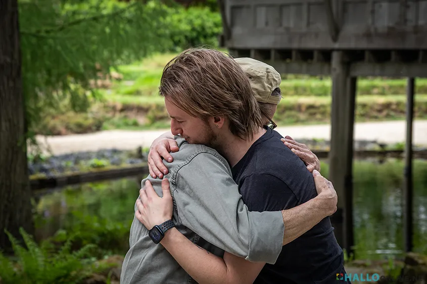 “We reden onder een boog water door die brandweermannen bij het afscheid van hun terminale collega over de wensambulance spoten.”