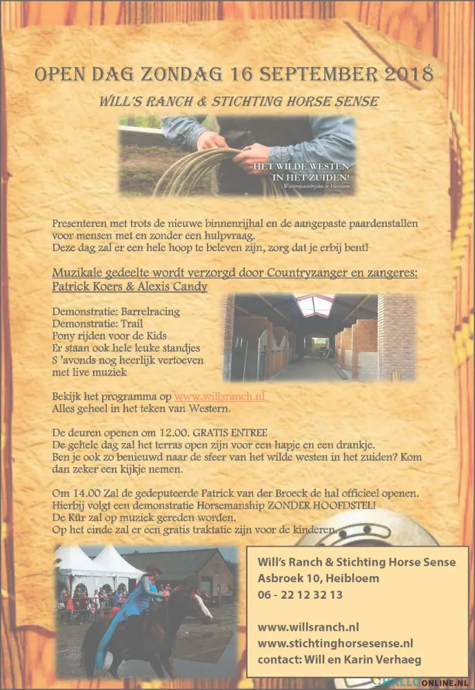 Voor meer informatie kun je ook terecht op de websites www.willsranch.nl en www.stichtinghorsesense.nl.